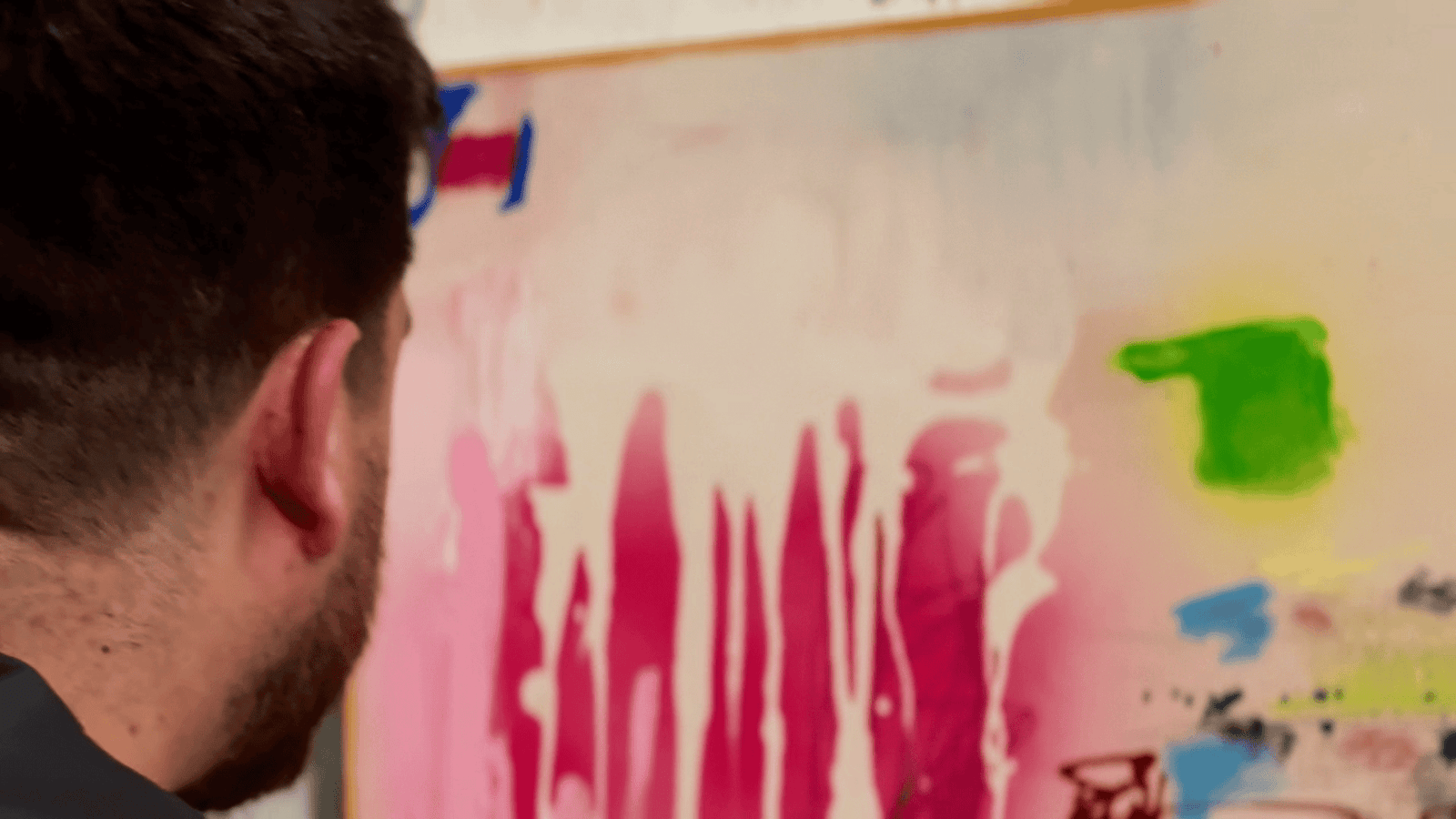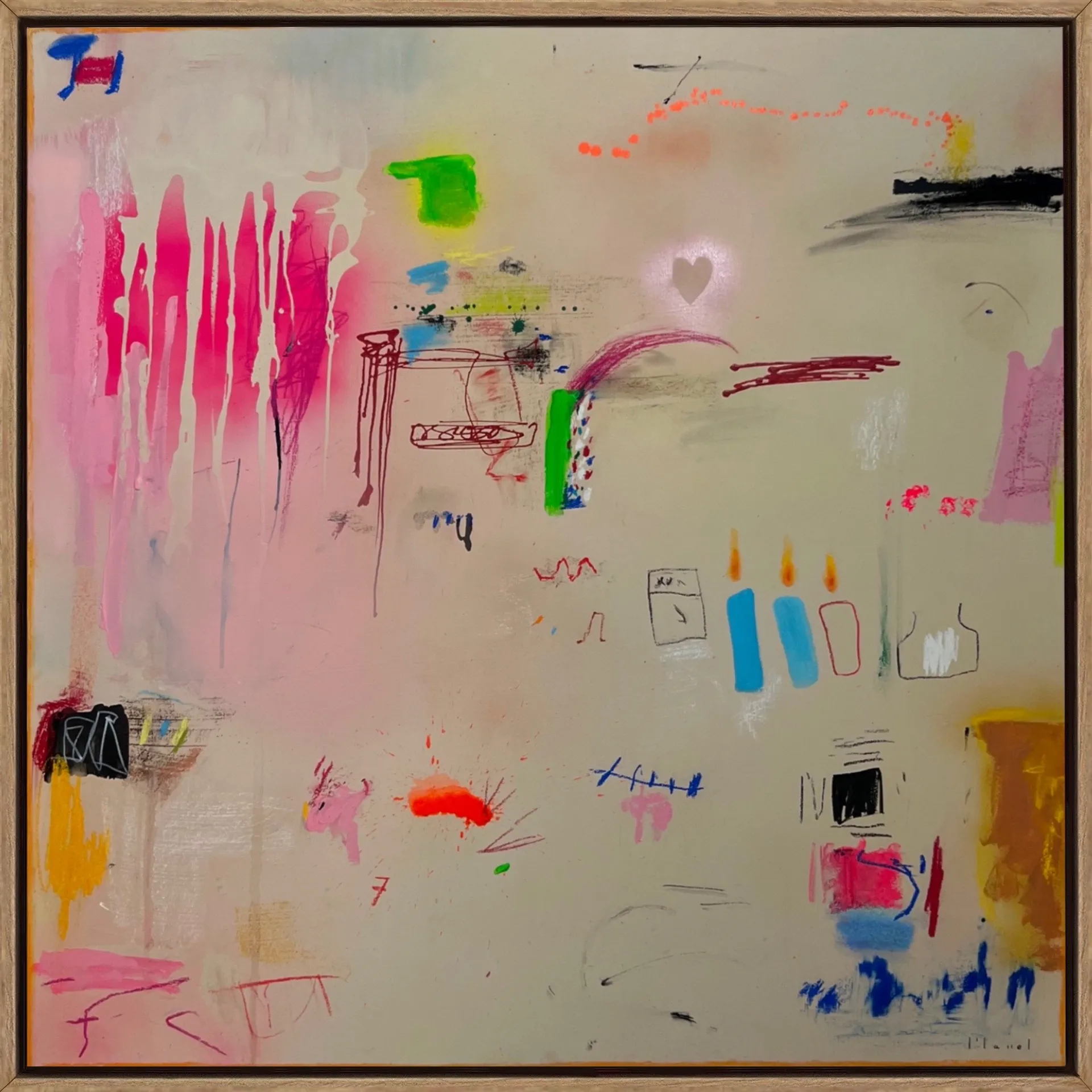 All pieces are made collaboratively under the artistic identity of Manel. Alex and Alejandro work on the same surface, sometimes alternating turns and other times painting simultaneously. Their process is guided by trust, intuition and attentive listening—each responding to the marks left by the other, refining or expanding them until the composition finds its balance.