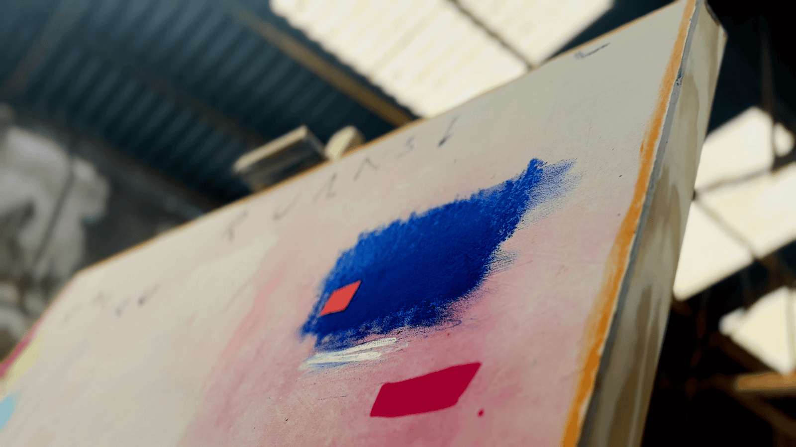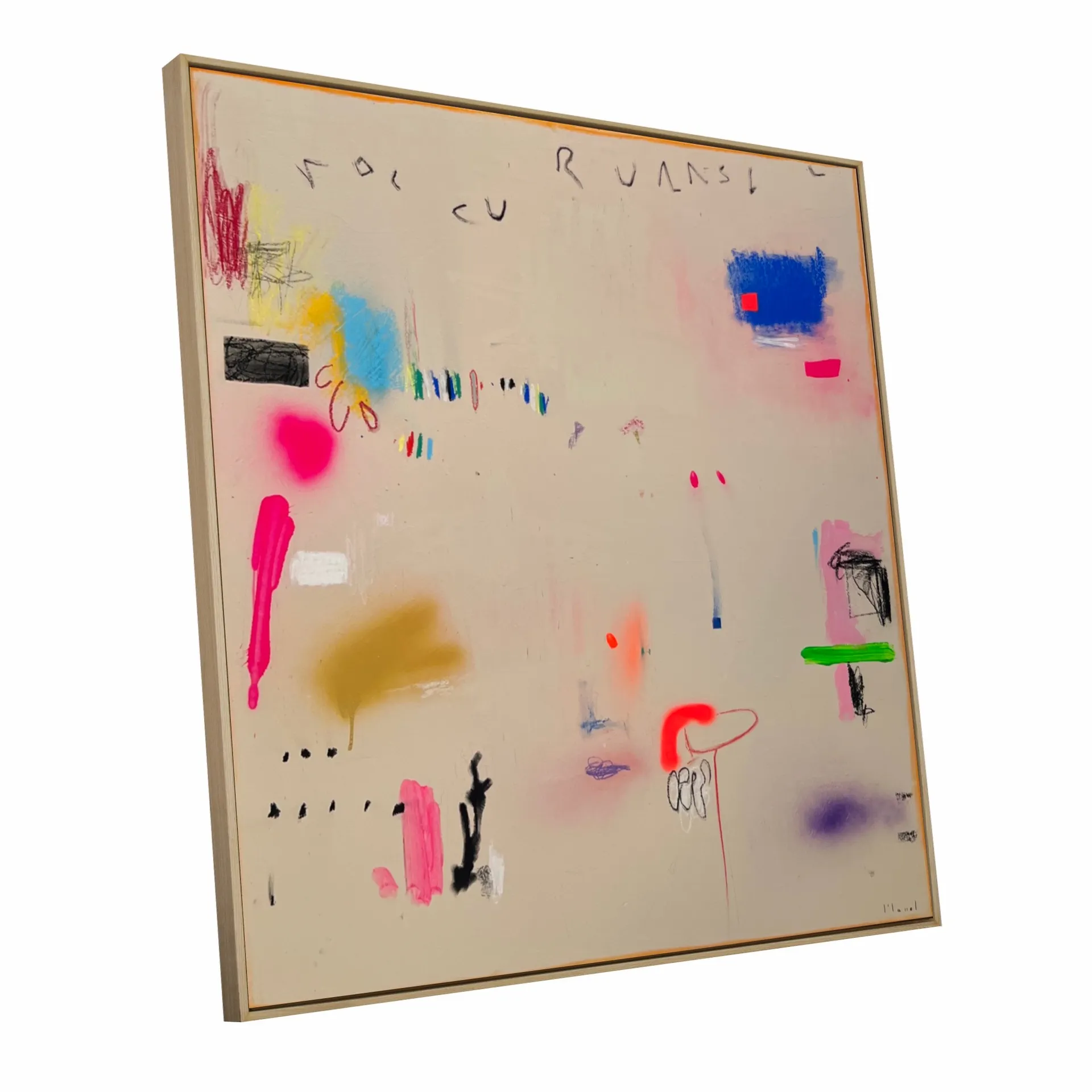 All pieces are made collaboratively under the artistic identity of Manel. Alex and Alejandro work on the same surface, sometimes alternating turns and other times painting simultaneously. Their process is guided by trust, intuition and attentive listening—each responding to the marks left by the other, refining or expanding them until the composition finds its balance.