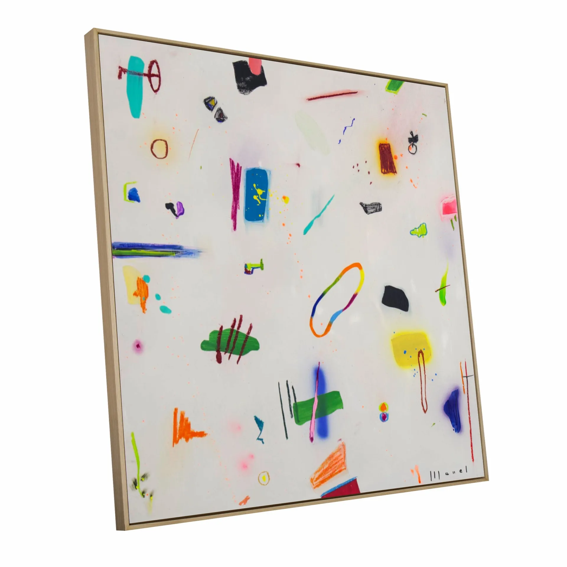 Each artwork embraces a sense of expressive looseness. Characters may chase, collide, float or simply coexist, creating a lively rhythm across the canvas. Nothing is overly planned: meaning appears through curiosity, interaction and spontaneity—much like how games unfold in childhood. The result is a vibrant and joyful universe where abstraction and imagination meet, inviting viewers to interpret, invent and play.