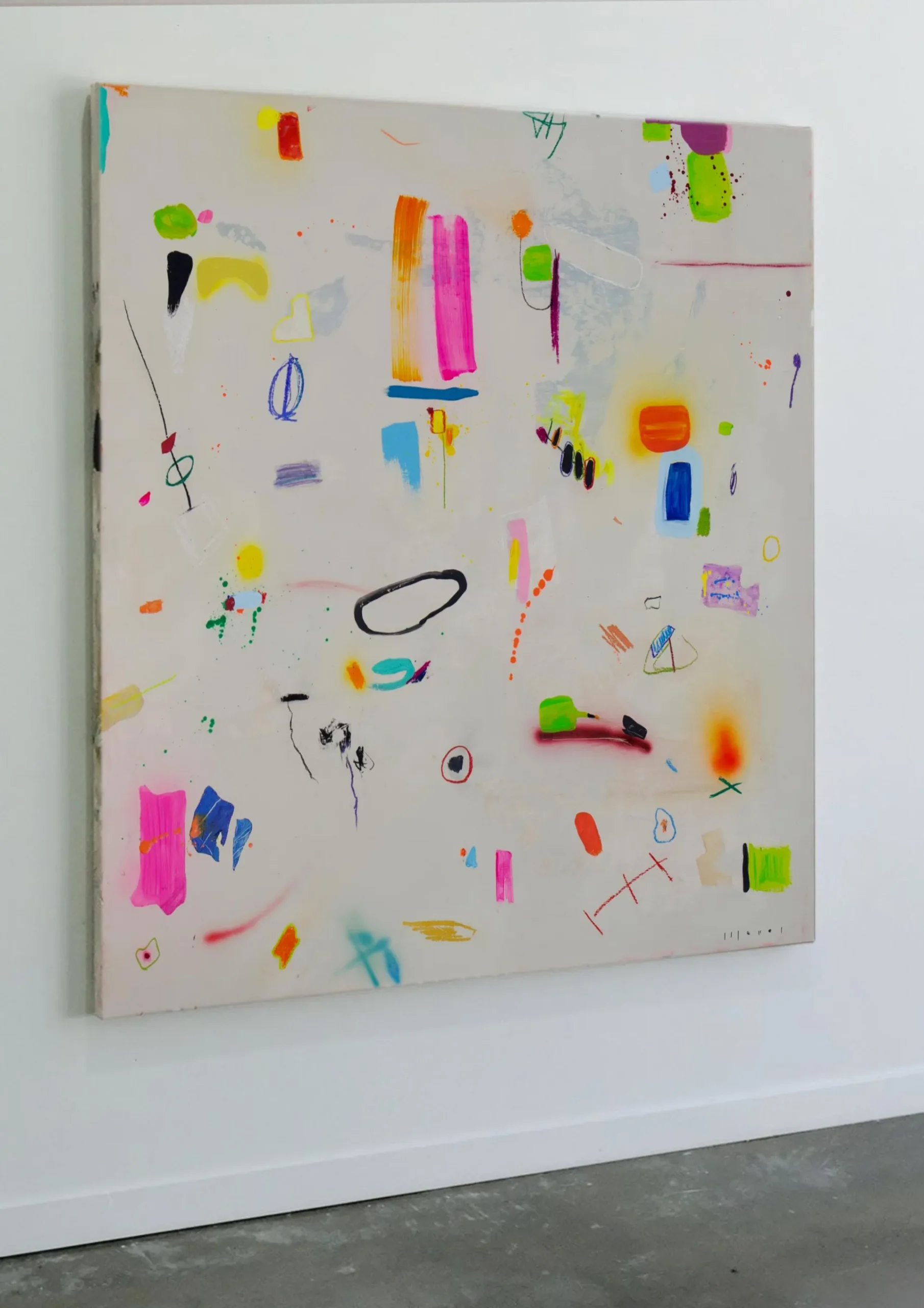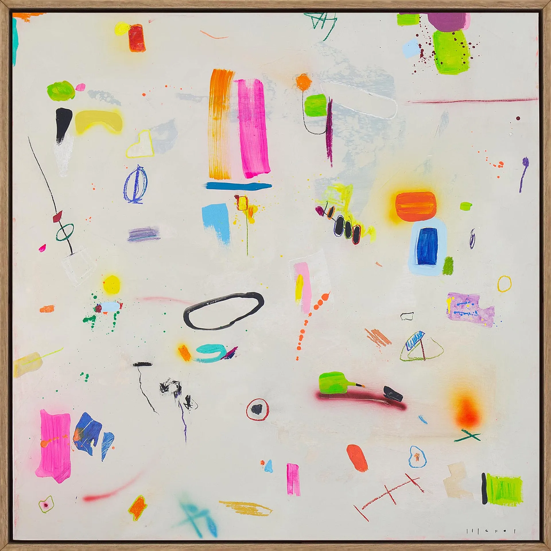 Each artwork embraces a sense of expressive looseness. Characters may chase, collide, float or simply coexist, creating a lively rhythm across the canvas. Nothing is overly planned: meaning appears through curiosity, interaction and spontaneity—much like how games unfold in childhood. The result is a vibrant and joyful universe where abstraction and imagination meet, inviting viewers to interpret, invent and play.